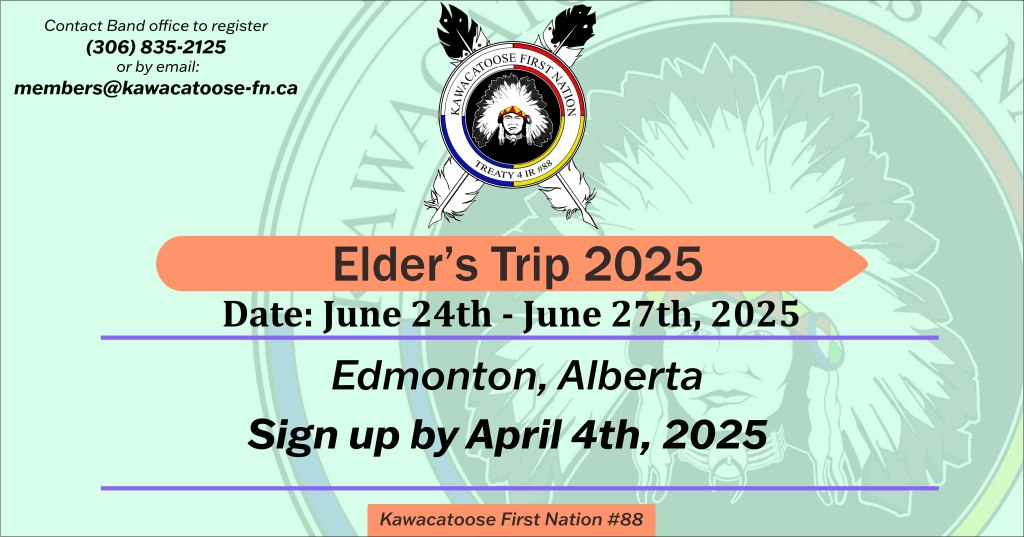 Please sign up via email or call the band office! members@kawacatoose-fn.ca