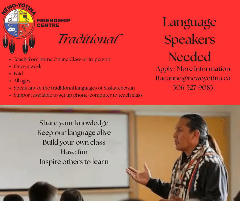 Aho! Newo-Yotina Friendship centre is now seeking language teachers!