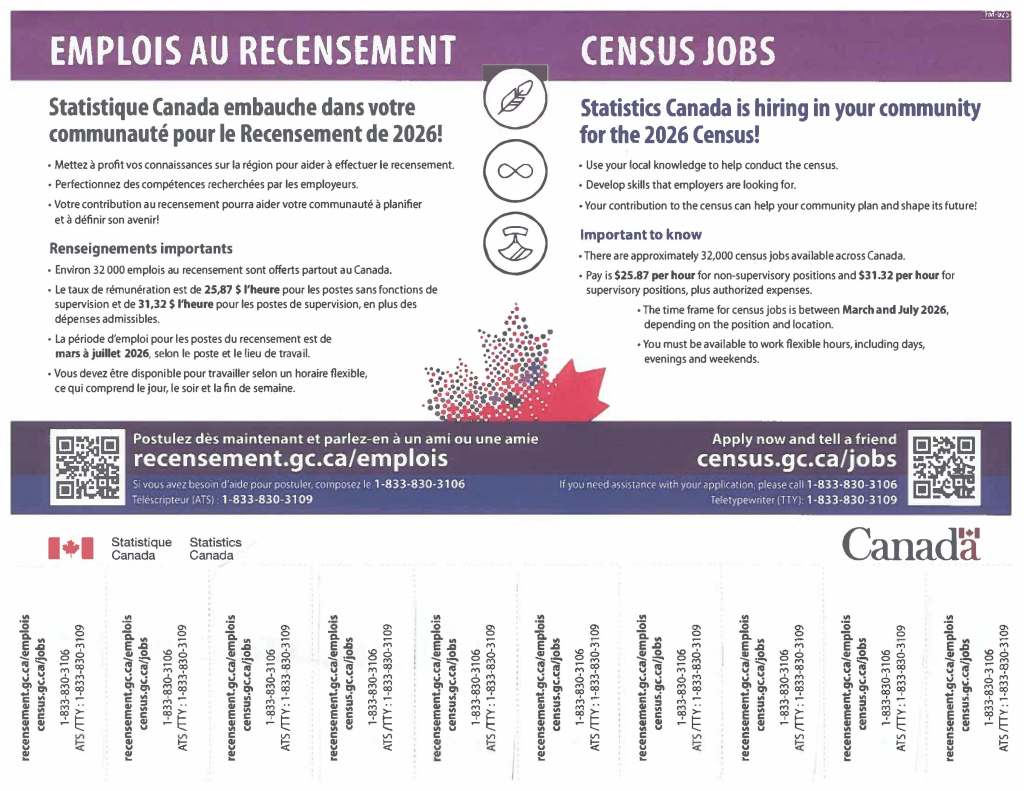 Visit census.gc.ca/jobs for more information